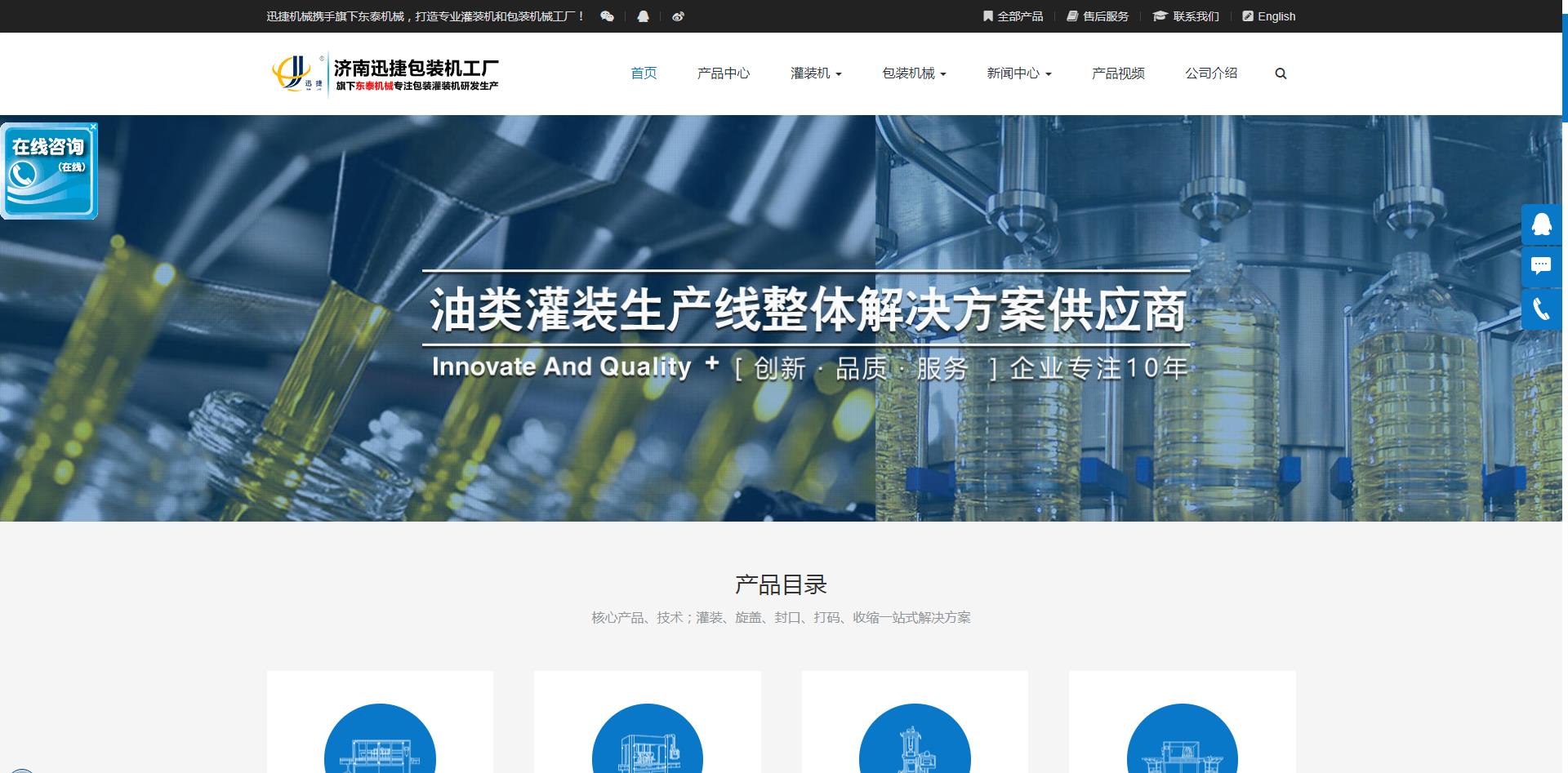 济南迅捷包装机械设备有限公司,主要产品有:油脂灌装机、酱类灌装机、灌装生产流水线及其他包装生产线配套产品。