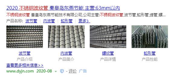秦皇岛东燕节能技术,主营不锈钢焊接钢管、不锈钢波节换热管、内波换热管和不锈钢螺纹管等。